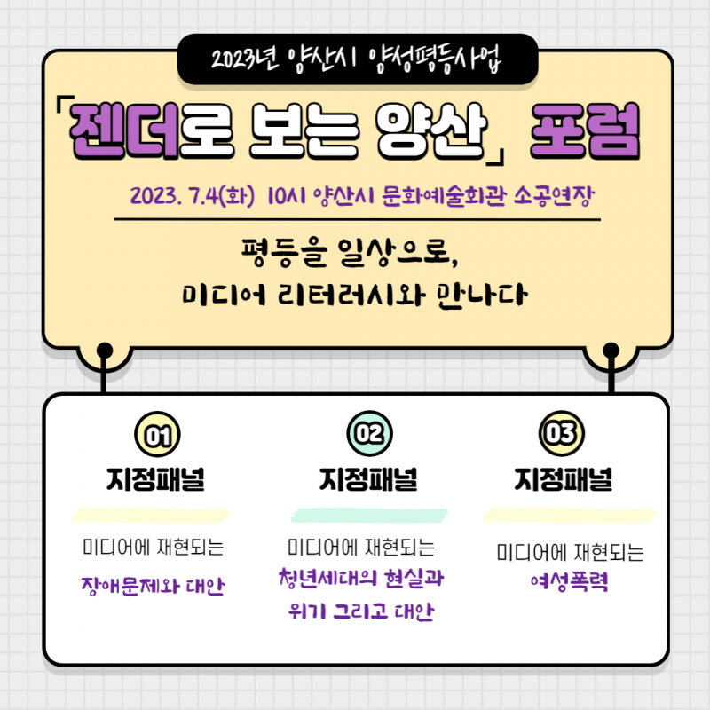2023년 양성평등사업 [제 6차 젠더로 보는 양산] 포럼 안내 페이지 정보 작성자 최고관리자 작성일23-04-19 16:12 조회1,140회 관련링크 이전글 다음글 목록 본문 이전글 다음글 목록