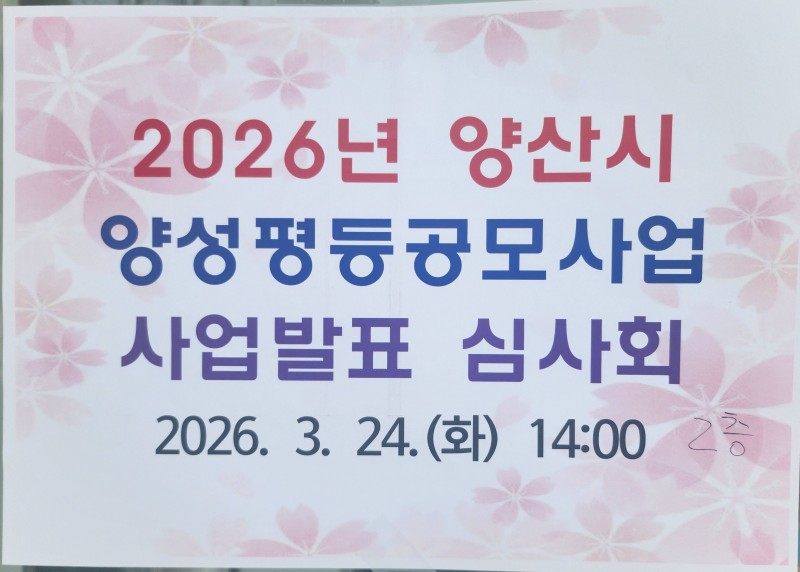 2026년 양산시 양성평등공모사업 사업발표 심사회(26.03.24) 페이지 정보 작성자 최고관리자 작성일26-03-27 16:23 조회12회 관련링크 다음글 목록 본문 1.일시:2026년 3월 24일 오후3시 30분2.장소:여성거점공간 이어zoom 다음글 목록